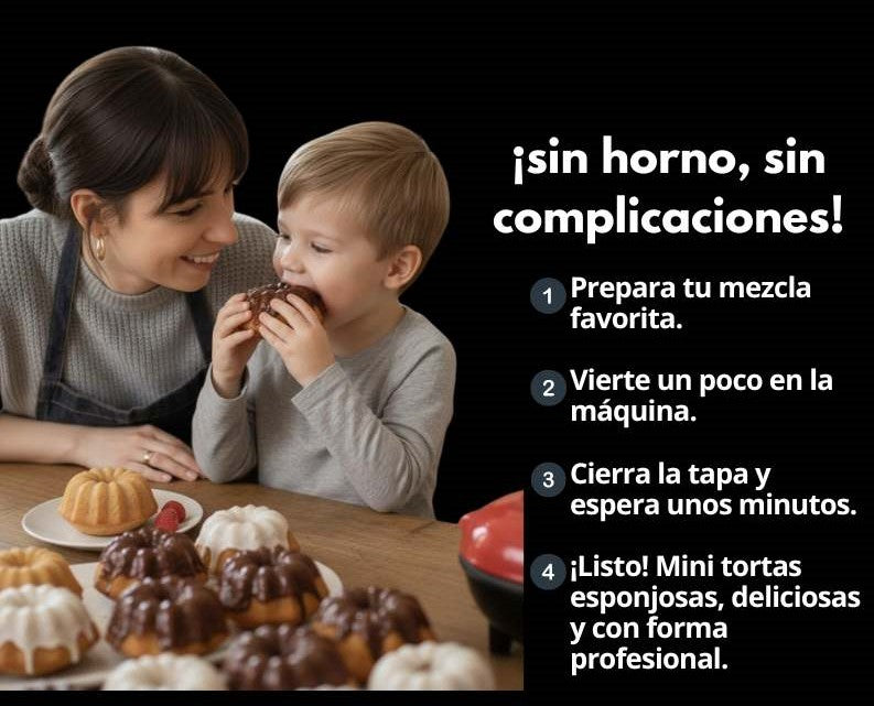Con MiniCake Pro®, prepara mini tortas suaves y esponjosas en solo minutos, sin necesidad de horno.